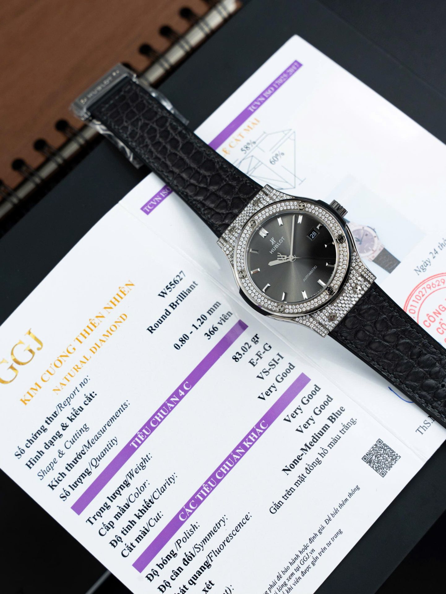 Hublot Classic Fusion Gray Dial Imitation Watches Custom Natual Diamonds Automatic SW300 Movement 42mm