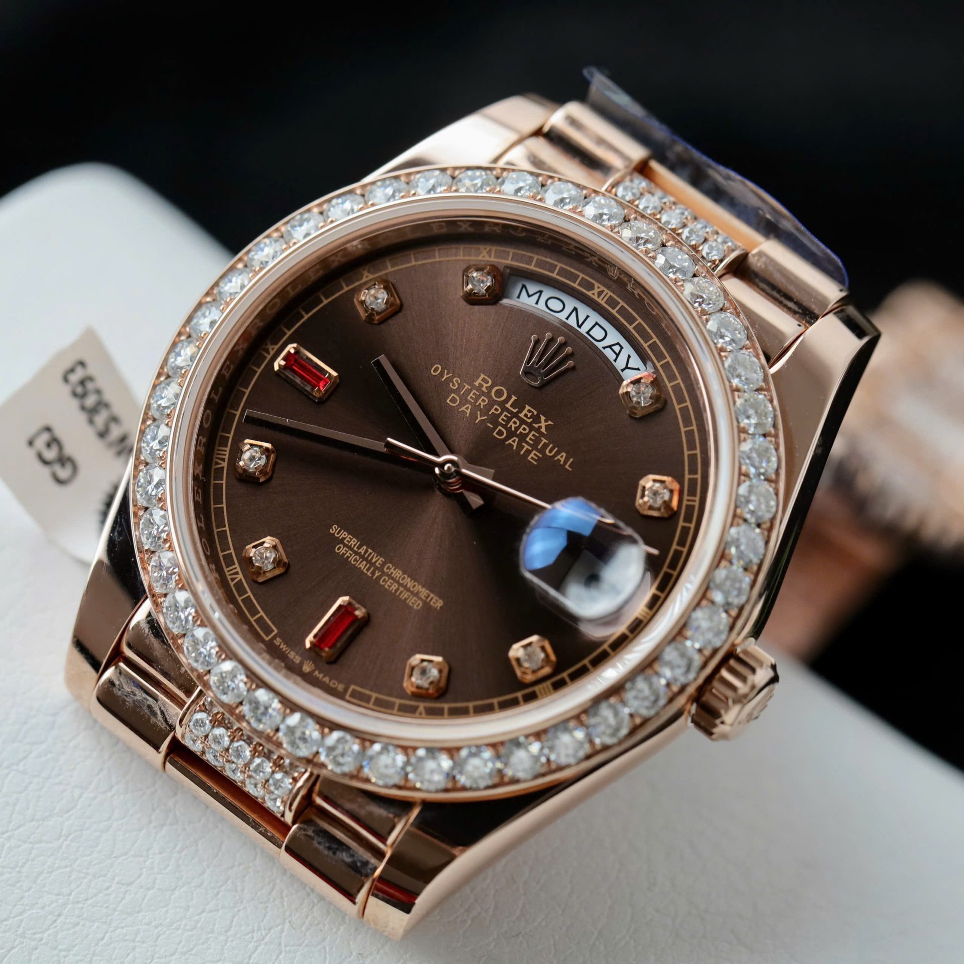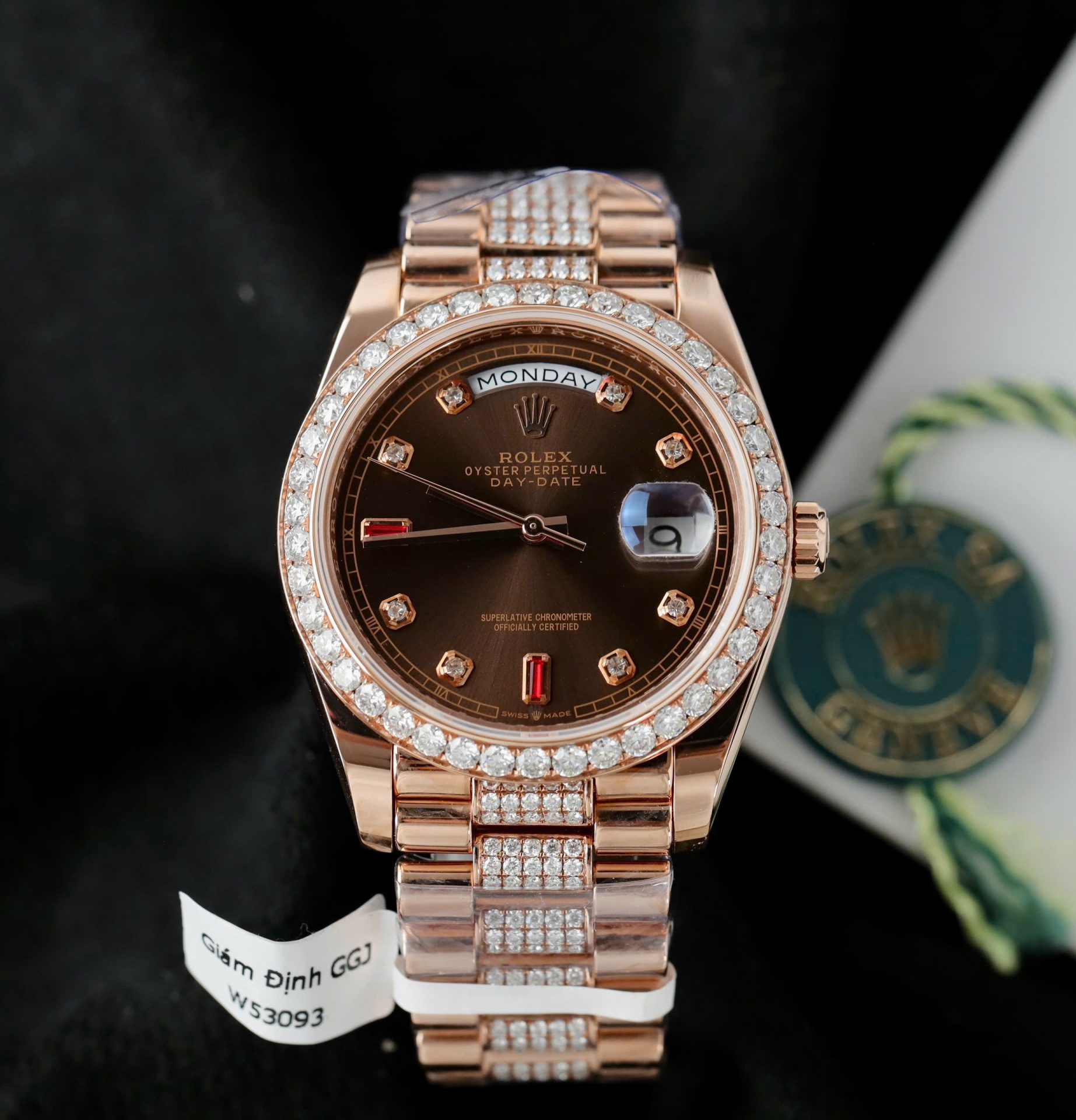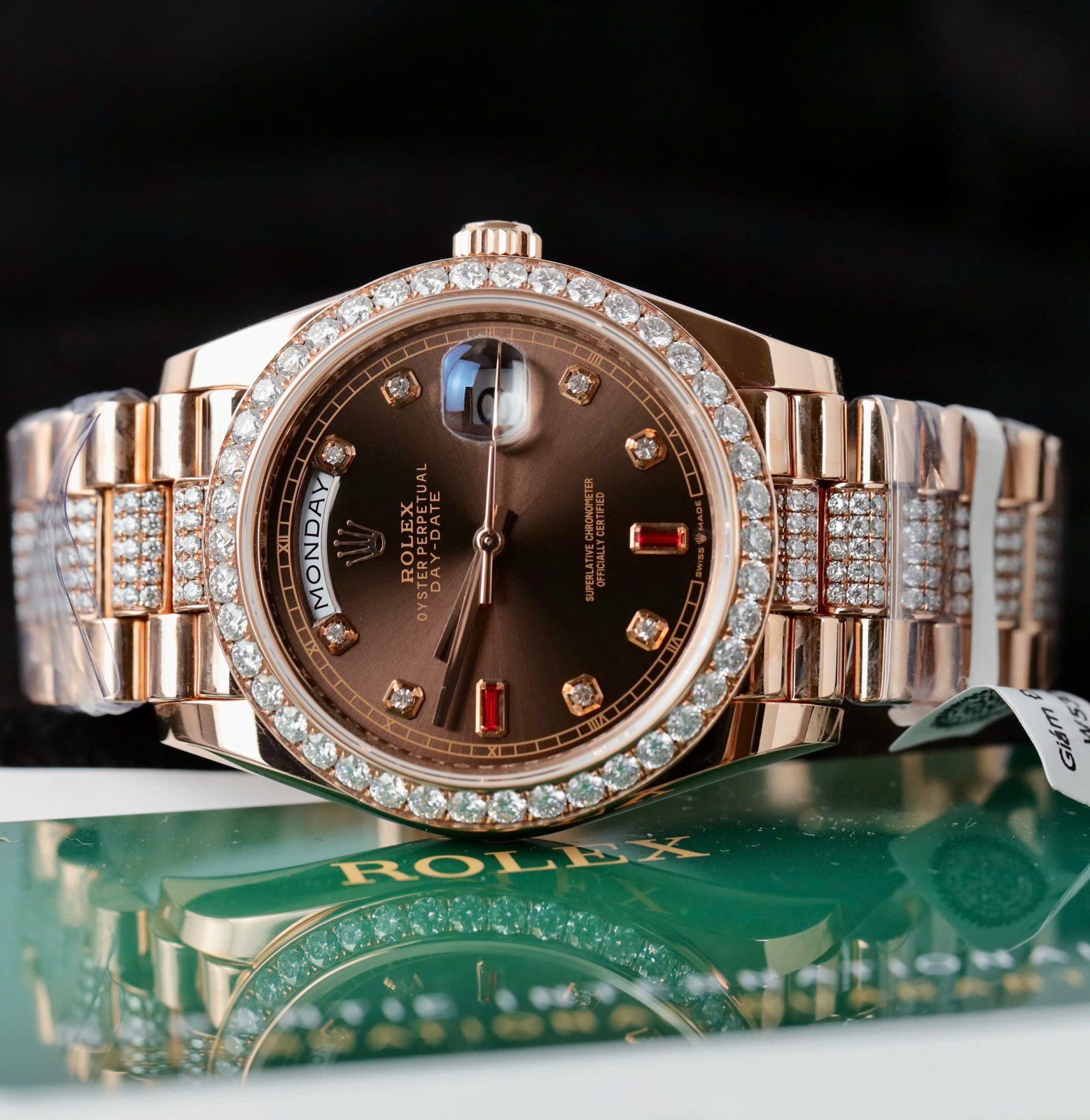 Rolex Day-Date Chocolate Dial Imitation Watches Gold Wrapped + Moissanite Diamonds Custom 36mm